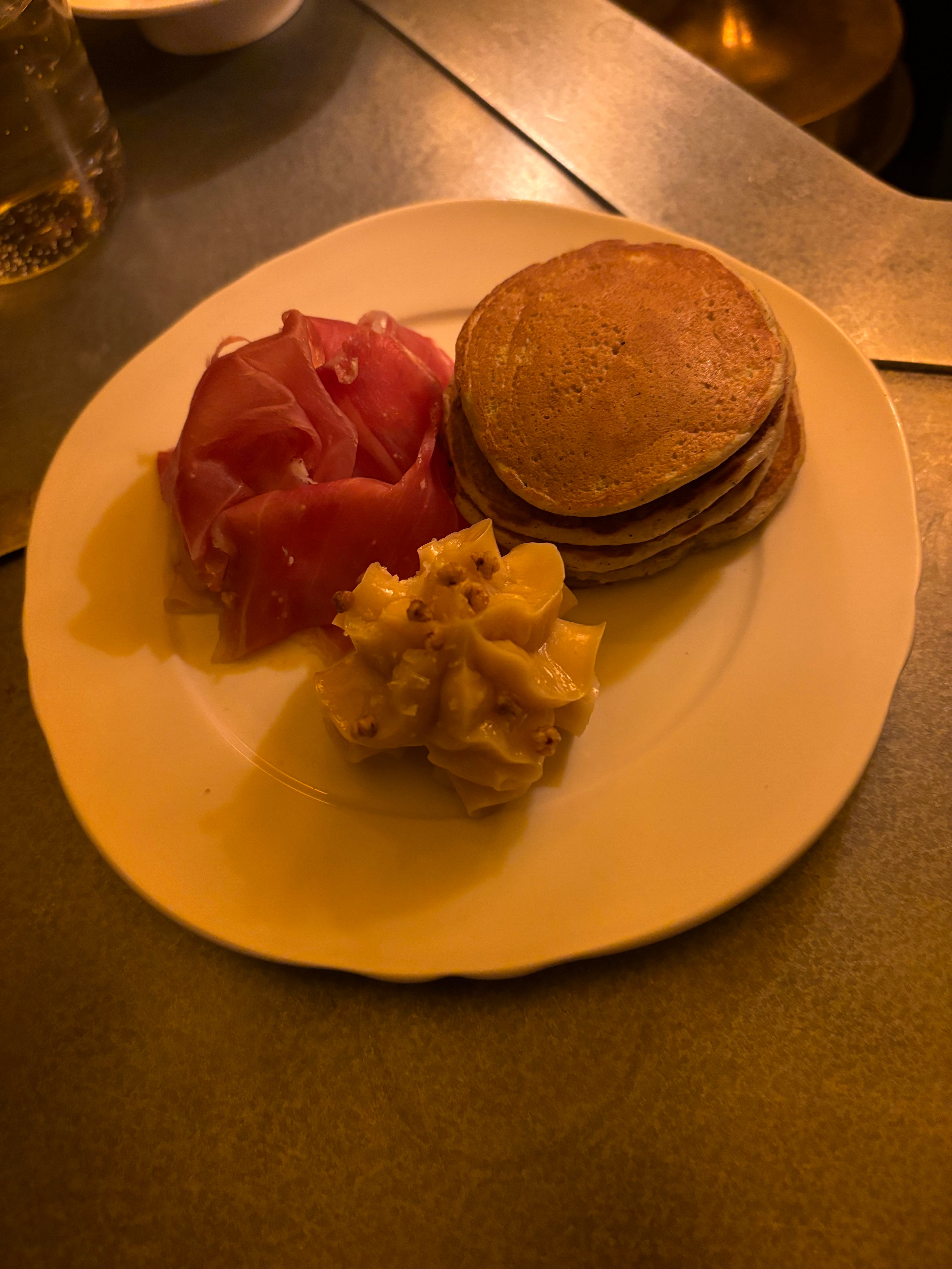 In terms of the food, order as much as you can, even if you have a dinner after: Josh Pinsky’s menu is full of delightful touches, from the pommes soufflés stars capping deviled eggs to the chicken liver mousse, topped with crisp leek confetti, and a deluxe little shrimp sandwich with mandolined lemon. And while we didn’t get the potato frico (the apex of griddled cheese), I feel like I’ve eaten it given how many people are talking about it. We asked the manager what we’d missed, and she suggested the buckwheat blini with country ham and maple butter. What sounded like an upsell was by far the best bite of the night. Thank you! And if you’re around next Thursday at 4:45, you’ll find me with a plate of it in front of me. Maybe two.